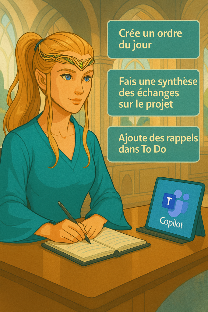 Visuel conçu pour Think’Mag dans un cadre pédagogique. Microsoft Teams & Copilot sont des marques déposées de Microsoft Corporation. Aucun partenariat officiel, juste une formation indépendante… et une bonne dose d’inspiration elfique.